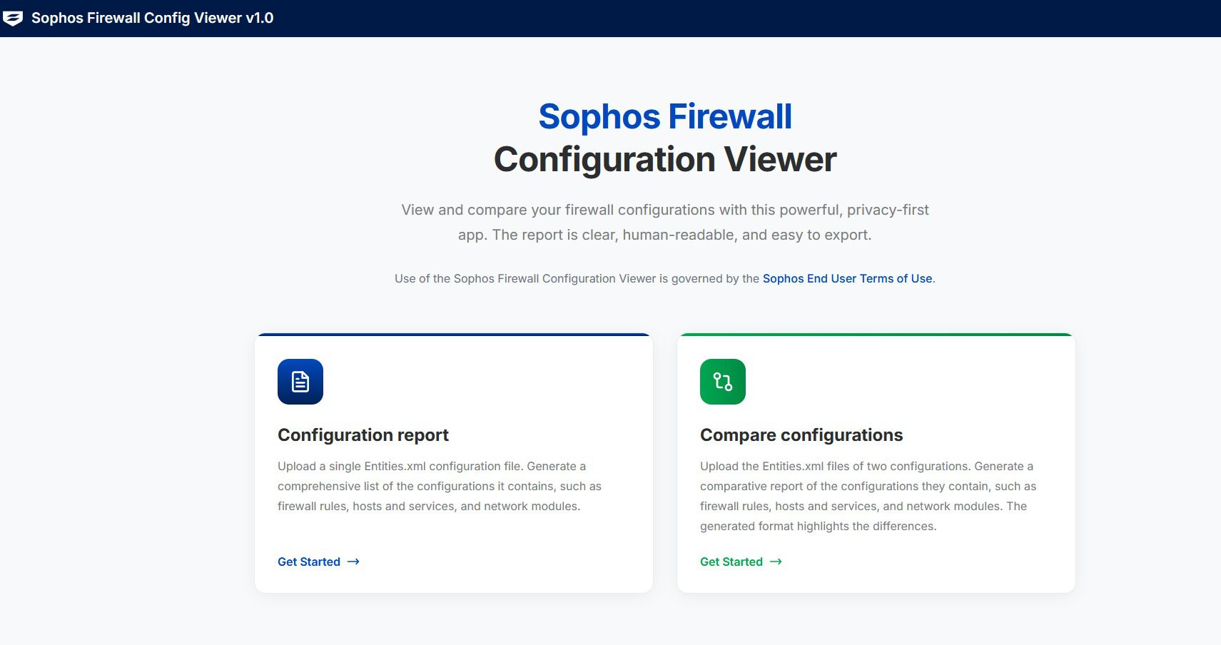 به نمایشگر پیکربندی فایروال Sophos (Sophos Firewall Configuration Viewer) بهصورت آنلاین دسترسی پیدا کنید. این ابزار مبتنی بر مرورگر بوده و نیازی به نصب نرمافزار ندارد.