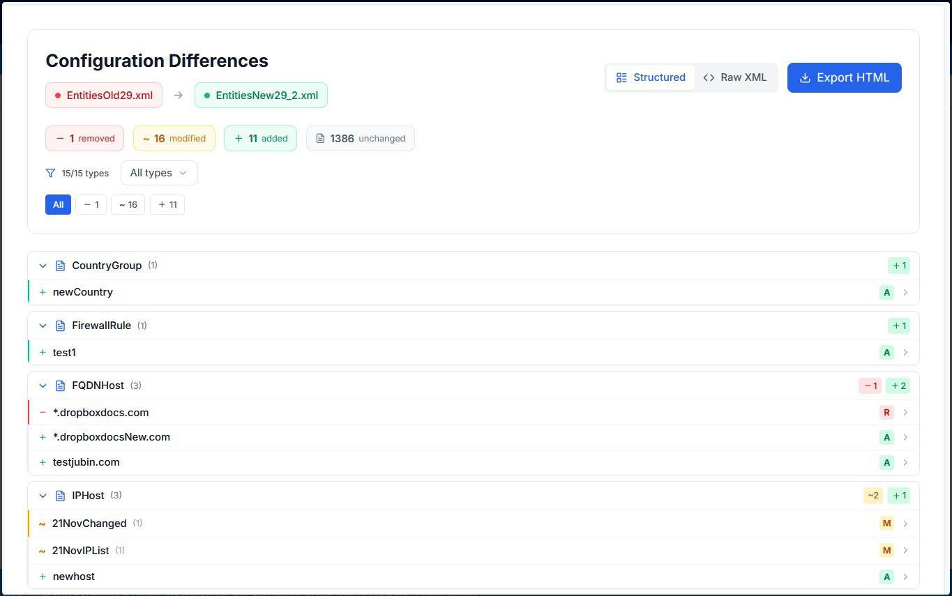 برای استفاده از ابزار، باید فایل پیکربندی فایروال را در قالب XML بارگذاری کنید. معمولاً این فایل با نام Entities.xml در خروجی API یا فایل بکاپ فایروال موجود است.