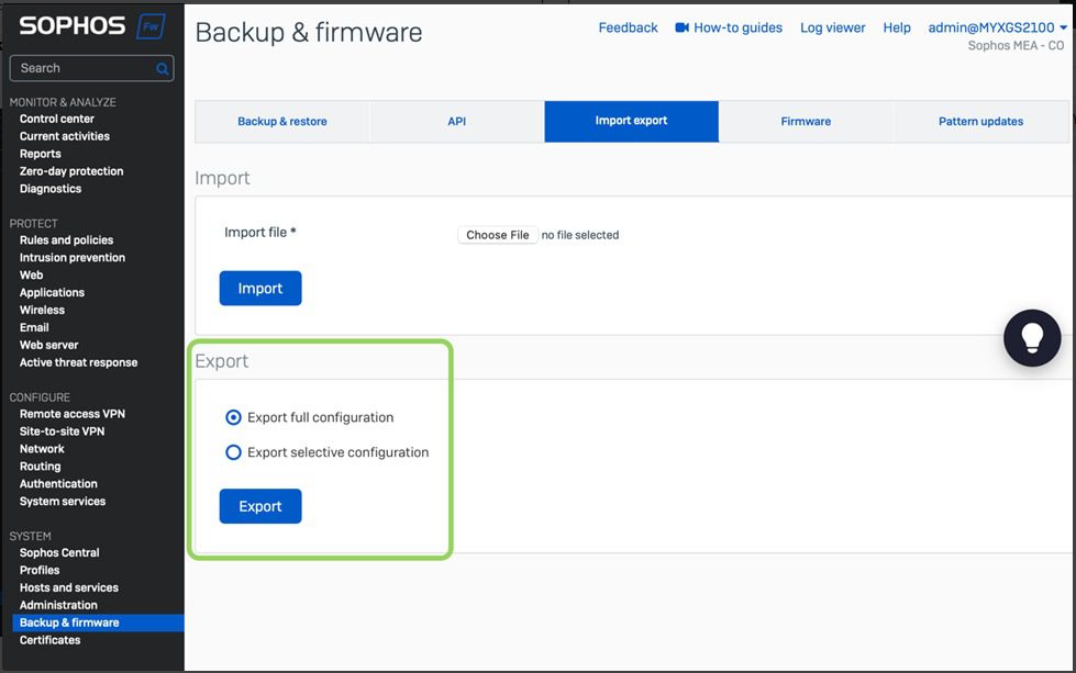 نحوه خروجی گرفتن از پیکربندی فایروال سوفوس