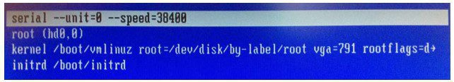 - كليد e را بزنيد و عبارت “serial 0=timeout ‐‐terminal ” را تايپ كرده و كليد Enter را بزنيد.